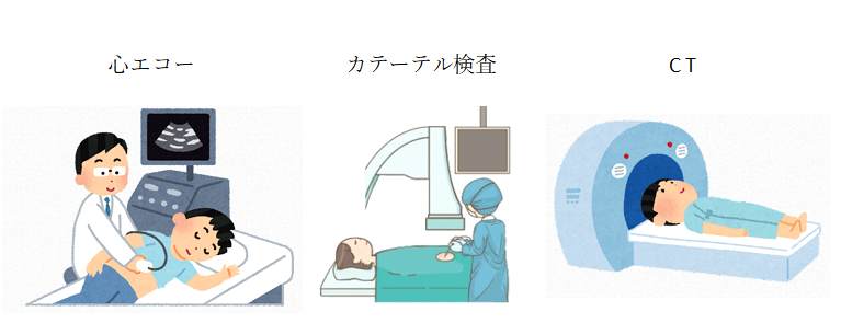 体循環の圧、すなわち血圧は腕で測ることができます。これは体に向かう動脈(この場合は腕の動脈)を体表から直接締め付けることで中の圧を測ることができるためです。しかし、肺循環は肋骨で囲まれた体の奥にあるので、圧を直接はかることはできません。そのため、首の付け根や肘の静脈からカテーテルという細い管をすすめ、心臓や肺の血管の圧を直接測定するカテーテル検査が必要となります。ただし、肺の血管の圧は心エコー検査である程度予測することができるため、心エコー検査と血液検査、CT検査、シンチグラム検査(RI検査)などの各種検査を組み合わせ、肺高血圧症の疑いが高い場合に「カテーテル検査で最終診断」と重症度判定を行うようにお勧めしています。